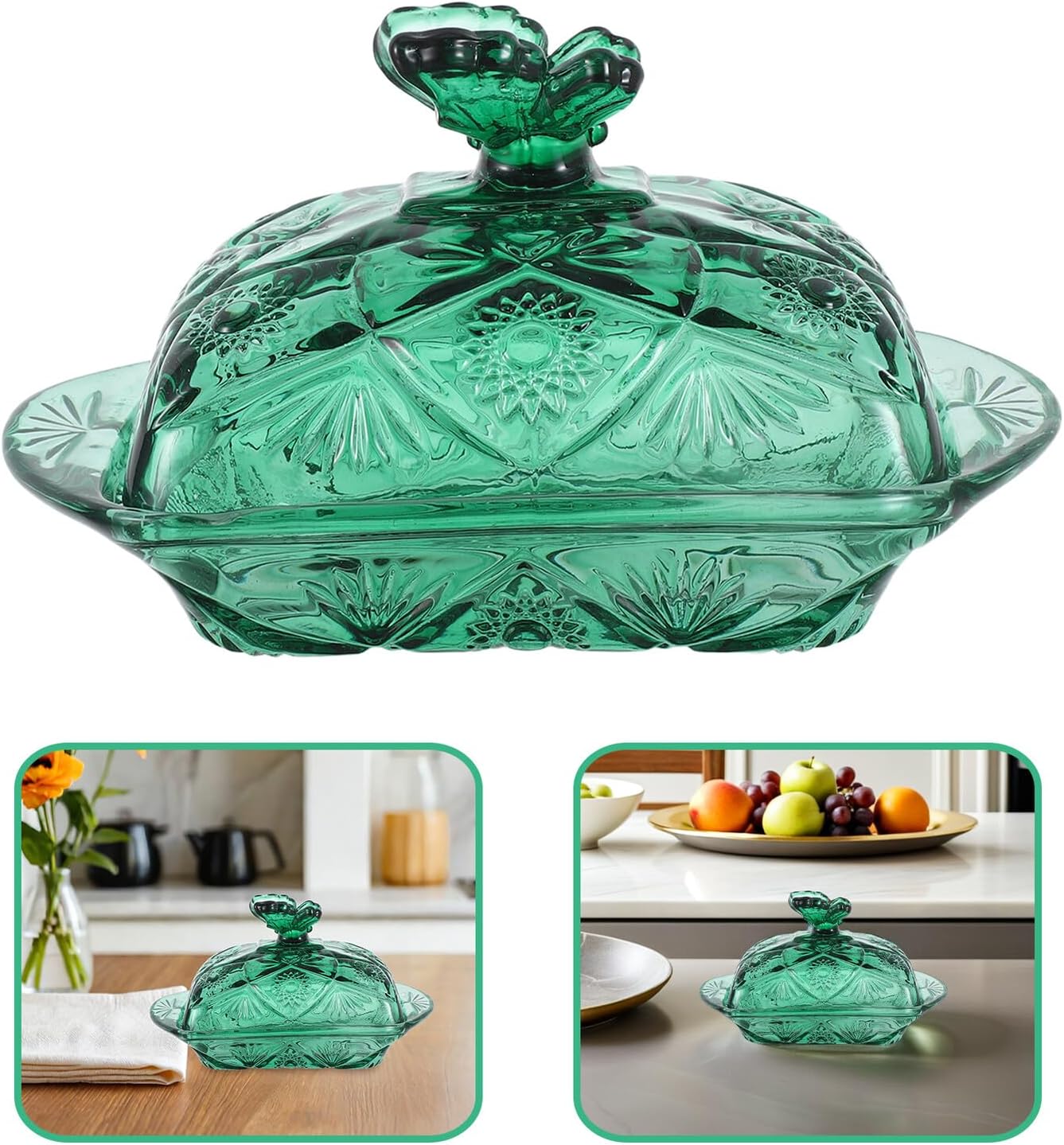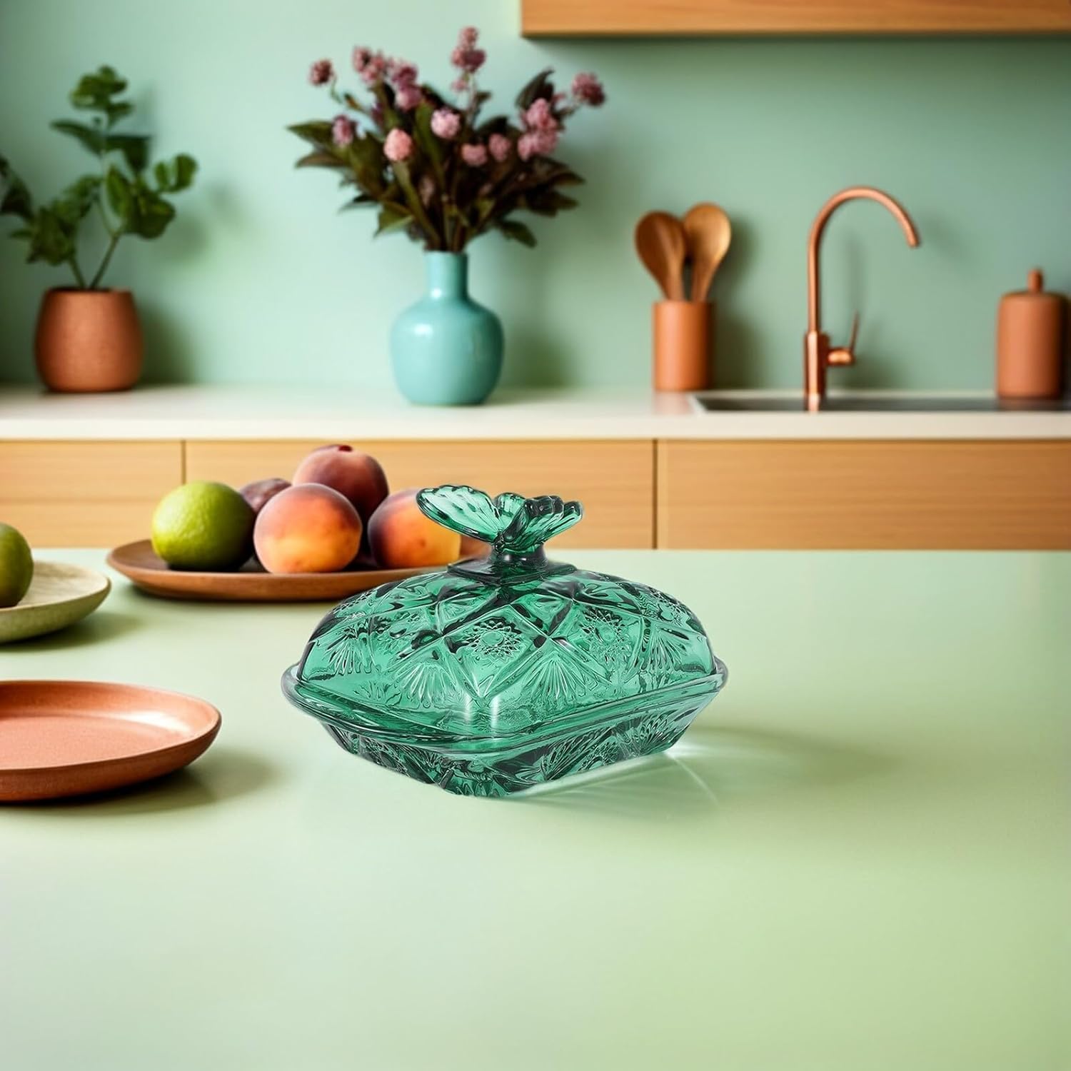 Package Include 1 x butter tray with lid 1 x butter spatular Characteristics - Size: 17.20X10.80X2.90cm/6.76X4.24X1.14in -Color:Green -Effortless pairing: match this butter dish green with other vintage butter dish or kitchen accessories for countertop, seamlessly blending with any dining setup from modern to retro butter tray -Material:Glass -Product Info: Butter Plate -Airtight freshness: the airtight butter dish with lid forms a tight seal, keeping homemade butter, cakes, and cheese fresher for longer whether used in the fridge or as a counter top butter keeper butter storage -Premium quality glass: crafted from great materials, this glass butter dish for countertop serves as a sturdy butter keeper and bread container, ensuring longevity and premium presentation - Size: 15.50X2.00X1.20cm/6.09X0.79X0.47in - Size: 17.00X11.00X10.00cm/6.68X4.32X3.93in -Attractive presentation: the covered butter dish for countertop doubles as a decorative butter jar for homemade butter, letting guests admire your desserts through the glass cover clear butter dish with lidGoods Informationbutter holder with lid Featuring a stylish glass butter dish with cover, this butter holder with lid presents an ideal butter storage dish with lid for showcasing vintage butter dish with lid aesthetics.butter storage Use as a butter dish for refrigerator or countertop, and delight guests by serving green glass butter dish for homemade cakes, cheese trays, or fruit arrangements at birthdays and weddings
