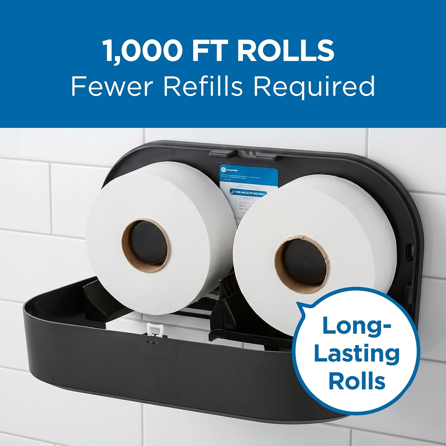 Our jumbo jr. bath tissue is an affordable choice for high-traffic areas, such as washrooms in hotels, office buildings, public facilities, schools, foodservice and healthcare facilities. Each jumbo-sized roll delivers an economical 1,000 feet of tissue, which means reduced maintenance time and greater customer satisfaction by decreasing the chances of run-out during peak times.